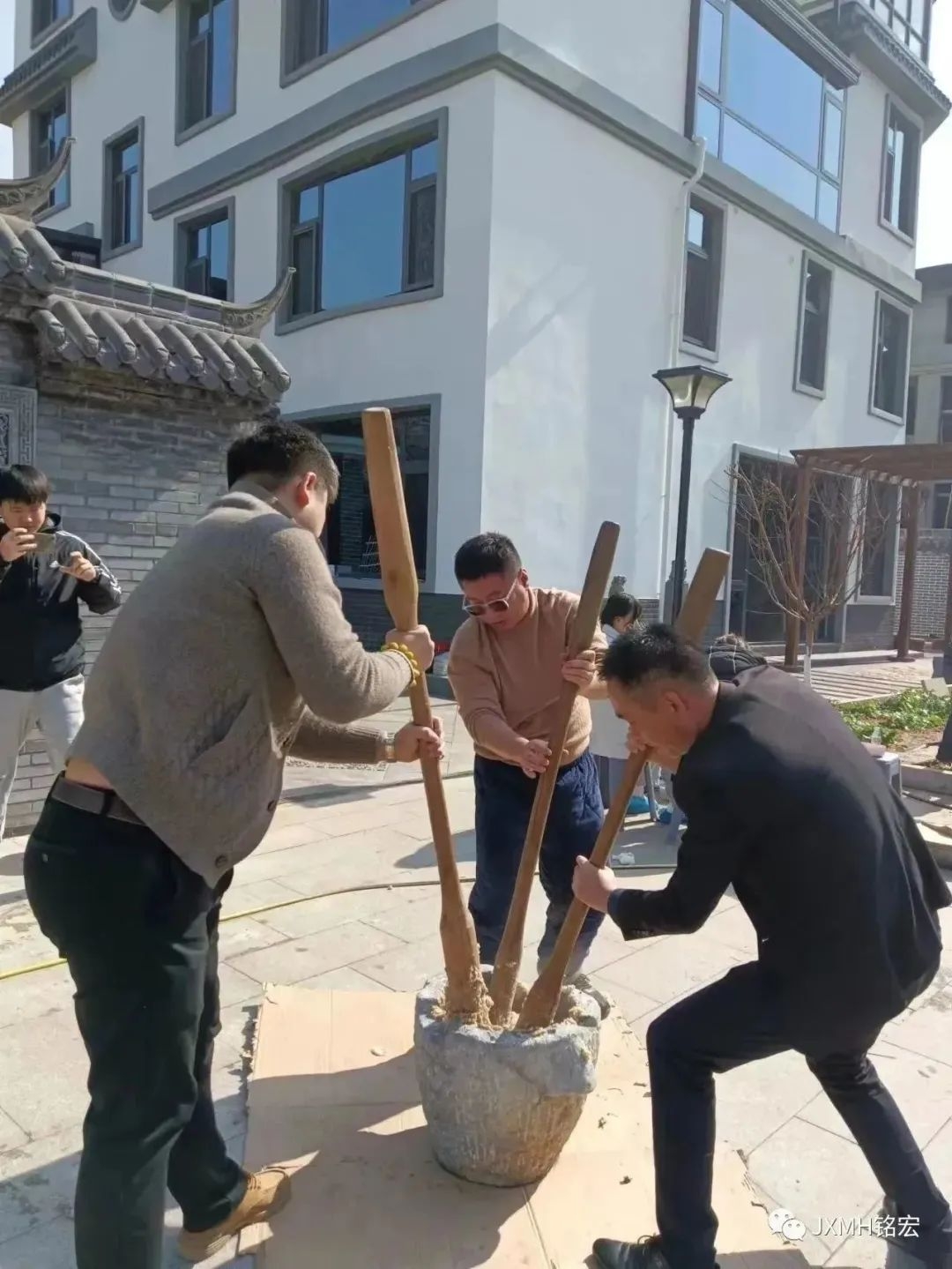 第一站院子里打麻糍冬日暖阳!年味浓浓!今年的公司年会在罗总家。未进其门,先闻其声。嘿哟 加油!嘿哟 加油!院子里,公司三巨头罗总与两位张总正忙活着最具有地方传统年味的打麻糍。请看三位老总搭配和谐!齐心